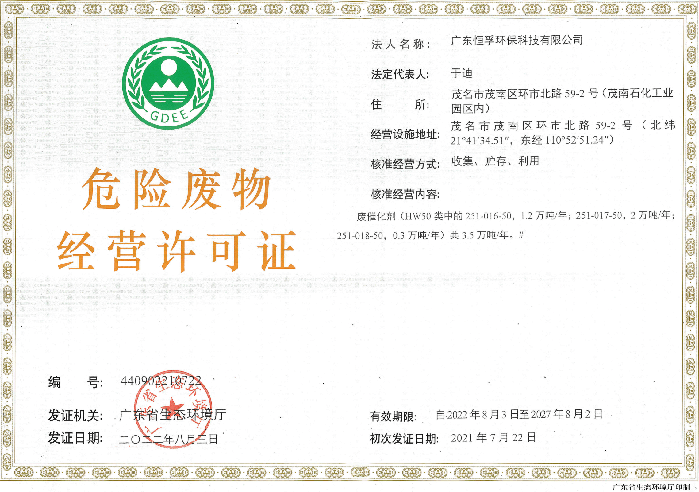 危险废物经营许可证